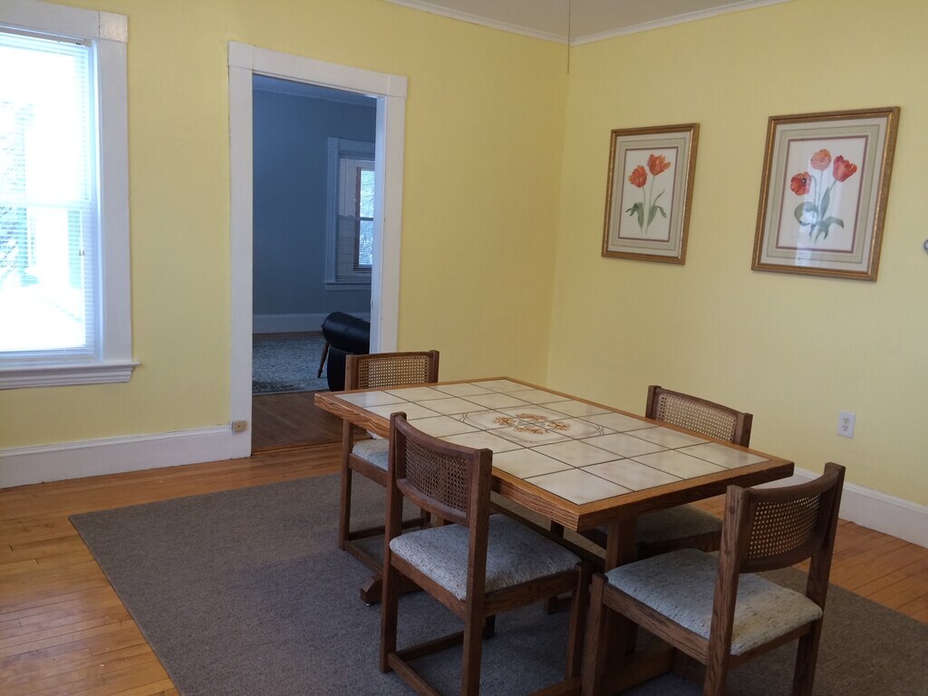- Large, sunny 1 bedroom apartment with second smaller room attached for office / craft or work out room - 1 bay of the garage in the attached garage - large living room - large dining room - galley kitchen - large 3 season enclosed porch - large bedroom - smaller bedroom for office or workout room. This room is accessed through the main bedroom. - Nice green backyard with patio furniture - Entire second floor of the building - Washer/dryer hook-up in basement - Period architectural details such as raised panel doors and crown moldings. Includes heat, water, driveway snow removal, lawn care. $1450 month. 1 year minimum lease. No smoking in building or within 25 feet of the building. A well trained cat or small dog is ok. Additional pet deposit required. First month rent and one month security deposit are due at lease signing. There are two other apartments in the building. To view the apartment, reply to this post. When we receive, we will contact you to schedule to show you the apartment.