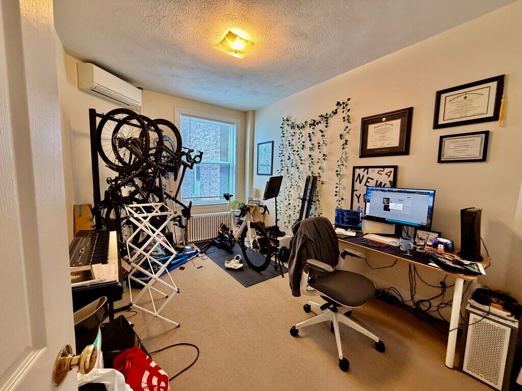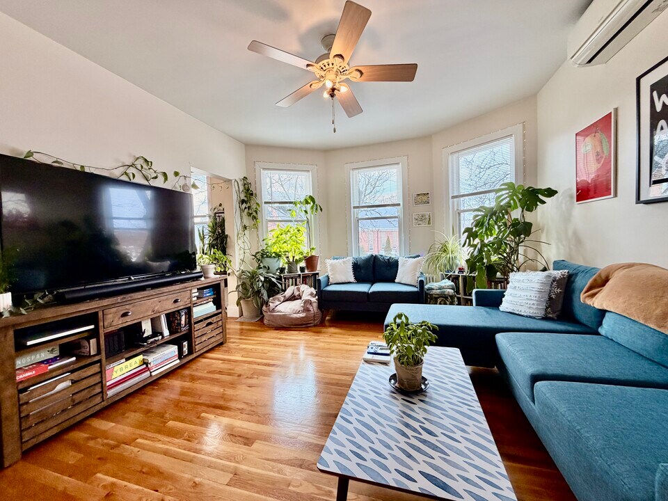 Sun filled 2 bedroom plus office in an A+ Brookline Village/Coolidge Corner location. The apartment is on the second floor above Martin's Coffee Shop. Laundry in building. Two even sized bedrooms. Built in mini-split A/C and extra heat. Large living room with french doors, eat-in kitchen with breakfast bar, ceiling fans, bay windows. Easy access to MBTA green line, shops, restaurants. Bus to Longwood medical.