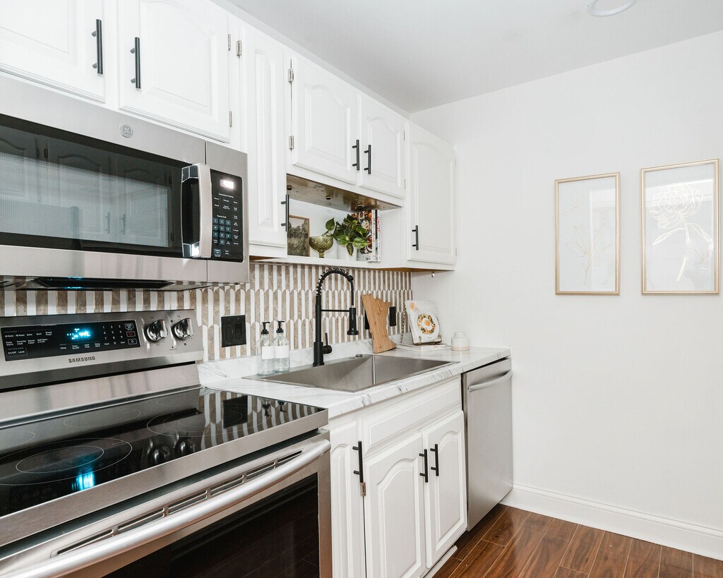 Stylish and updated 1st-floor unit featuring 2 bedrooms and 2 bathrooms. Fresh paint and new carpet throughout create a clean, modern feel. The bright white kitchen includes stainless steel appliances and modern touches. The spacious primary suite offers a private bath and his-and-her closets for added storage. A large patio facing the complex’s front yard extends your living space outdoors, while shared amenities include a fitness center, outdoor pool, sauna, and a party room for gatherings. Enjoy the convenience of in-unit laundry, two heated underground garage parking spaces, and a dedicated storage locker. The unit is also wired for ultra-fast Ethernet (up to 1,000 Mbps) — perfect for working from home or seamless streaming. Located in a prime, convenient area close to shopping, transit, and everyday essentials, this quiet building offers the best in comfort, convenience, and lifestyle. HOA does not allow pets unless they are service animals.