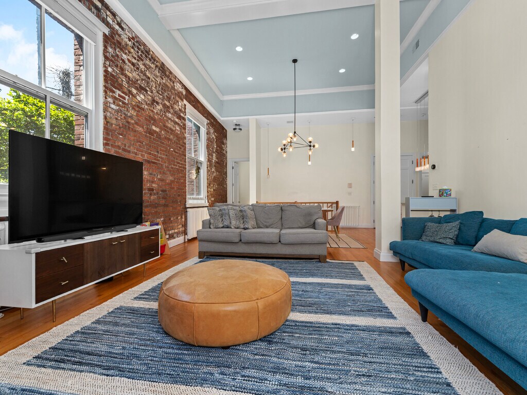 Rent includes ALL utilities with this one! This stunning, loft-inspired duplex offers dramatic 15-foot ceilings, and three sides of sun-drenched exposure. Enjoy 3 spacious bedrooms, 2.5 bathrooms, and the modern luxuries of a/c, in-unit laundry, and the convenience of a dedicated parking spot! The home blends modern luxury with industrial charm, featuring exposed brick, soaring ceilings, and an open-concept layout ideal for entertaining. The primary suite offers a walk-in closet and a spa-inspired en suite bathroom with a double vanity. Step outside to a sizable shared patio perfect for summer get-togethers and outdoor grilling. This home is truly a unique opportunity in one of Boston's most exciting neighborhoods. Easy walk to the Blue Line MBTA, shops, and neighborhood restaurants like Angela's Cafe and Rino's. One parking spot is included as well! Available NOW!
