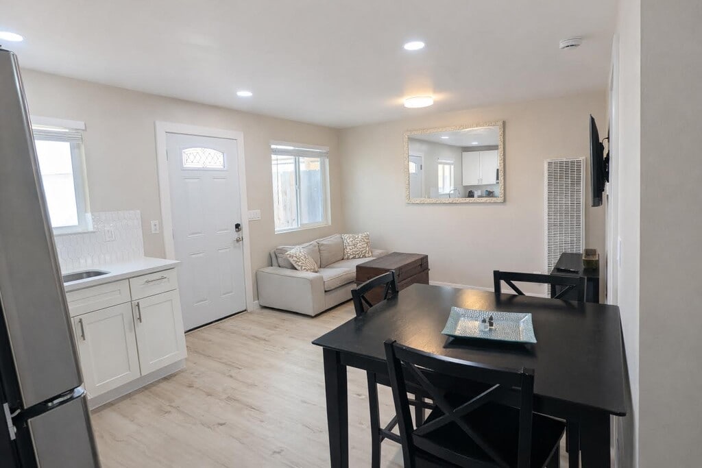 Enjoy coastal living in this detached 1-bedroom / 1-bath home just two blocks from the beach. Walk to beachside restaurants, coffee shops, wine tasting, the Amtrak station, and local shopping. Downtown Pismo Beach and the Monarch Butterfly Grove are an easy walk or bike ride away. This home offers the comfort of a separate residence with no shared walls, featuring a fenced backyard and private deck—ideal for relaxing outdoors while still being close to everything the Central Coast has to offer. Features include: • Recently remodeled (2024) with quartz countertops and luxury vinyl plank flooring • Detached, single-story layout • Fenced backyard and private deck • Dedicated off-street parking • Full kitchen • Washer and dryer on site (shared with one other resident) • Pet-friendly (quiet dogs or cats welcome) • Storage included • High-speed internet included Utilities: All utilities are included—water, sewer, trash, electricity, gas, and high-speed internet—providing simple and predictable monthly living costs. Additional notes: • Home is currently unfurnished (furniture shown in photos is for staging purposes only). Willing to furnish for the right tenant. • Bed shown in photos is a queen size Available on a 12-month lease. We are seeking a stable, respectful tenant and are willing to wait for the right fit. Please message with a brief introduction about yourself and your living situation if interested. Thank you, Ian and Brandy
