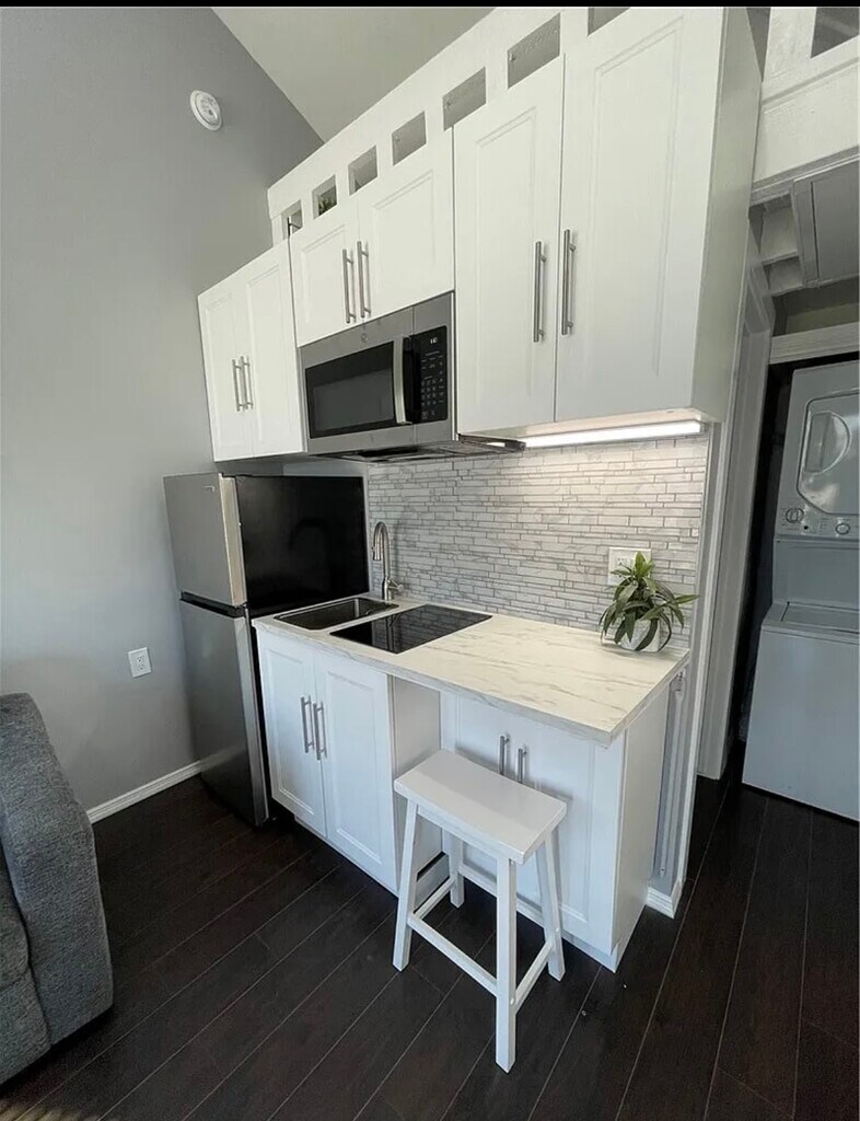 MOVE-IN SPECIAL: FREE EARLY MOVE IN as early as 3/15th with a 12-month lease! This cozy attached JADU unit may be just the studio you've been waiting for!! This stunning single will be ready to move into March 15th!! All newer construction, this special place has been thoughtfully designed to take advantage of every square foot of space, and more! The gorgeous kitchen space can have dual use as an office, and the full sized bathroom includes shower and tub. Enjoy your own private entrance, a flat screen, air conditioning, and best of all your own washer and dryer in the unit! Easy access to freeways, plenty of street parking. Access to E-scooters. Less than 2 miles from Manhattan Beach pier, concerts in the park. Walking distance to Trader Joe's, and local restaurants and coffee shops!