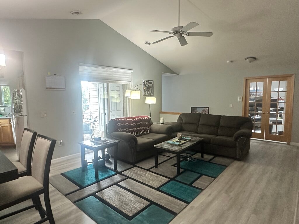 Welcome home to this spacious and beautifully updated upper-level condo! This open-concept home features brand-new floors throughout, a soaring 12-foot vaulted ceiling in the living room, and a cozy gas fireplace framed by built-in bookshelves. The kitchen boasts granite countertops, a breakfast bar, and all appliances included. A set of French doors leads to a bright den or home office with skylights. The primary bedroom includes a full en-suite bathroom, and you'll love the convenience of in-unit laundry with a full-size washer and dryer. Unlike most units in the complex, this condo offers a full finished basement, providing a large rec room that's perfect for entertaining or relaxing, plus a cedar closet and plenty of storage space. Enjoy your private balcony, private entrance, and a 2.5-car attached garage. Located just minutes from Alverno College, shopping, restaurants, and major highways - this condo offers both comfort and convenience. Utilities: Tenant will set up and pay their own electricity and internet services. Water remains in the owner's name; tenants will be billed quarterly for their share of the water usage based on the actual utility bill. Lease Terms: Initial 12-month lease, with the option to continue month-to-month afterward if both parties agree. Pets: $50/month (per pet); $350 deposit (refundable, per pet)