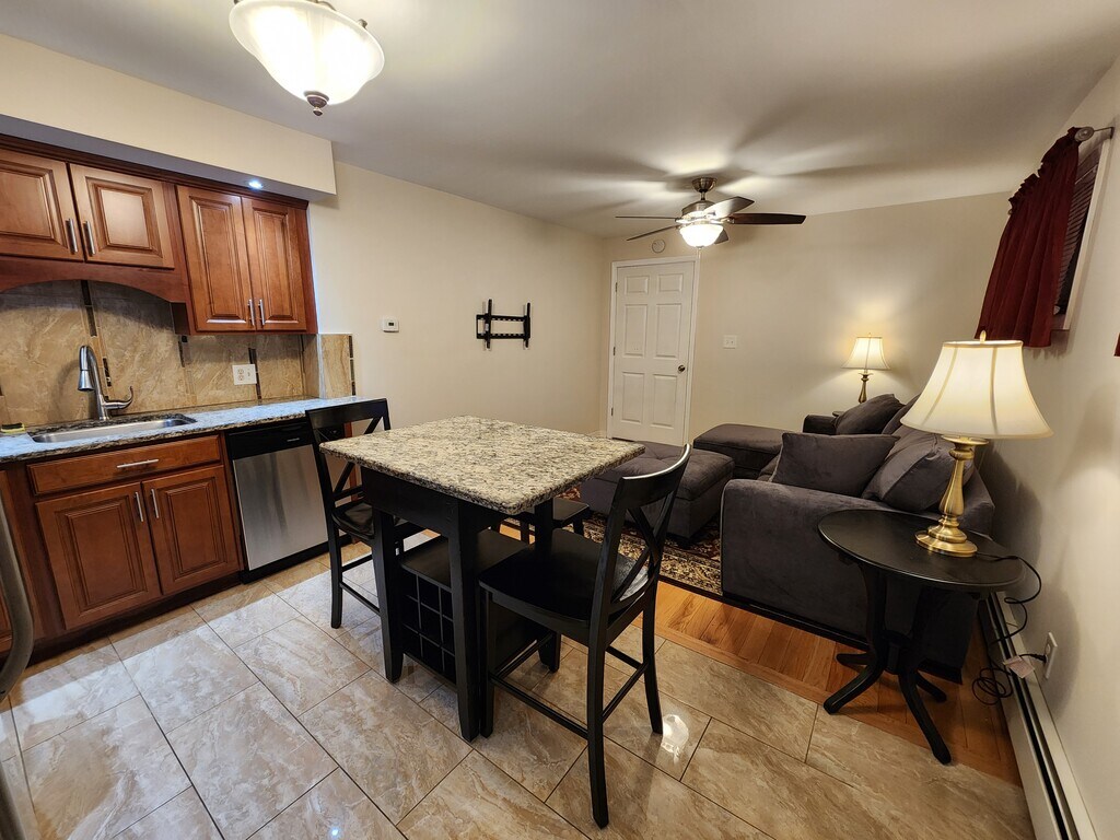 A newly renovated, furnished one bedroom first floor apartment. Many extras including mounted flat screen TV, electric fireplace, stainless steel appliances, quality hardwood floors, porcelain tiled kitchen, bathroom, laundry closet, new appliances including washer and dryer. No smoking, no pets. Must be clean and reasonably quiet. Access to major bus routes. Close to Buffalo State College, D'Youville, Canisius and other Buffalo Colleges. Near Albright-Knox Art Gallery, Bidwell and Delaware Parks, Elmwood Village, West Side cafes and shopping. Within minutes to expressway leading to downtown Buffalo, major hospitals, UB campuses, Grand Island and Niagara Falls. First month's rent plus $1100.00 security deposit, references, and a one year lease required. $1100.00 per month includes gas, electric, garbage, water, cable TV and internet. Only serious inquiries please. Contact owner to view by appointment only.