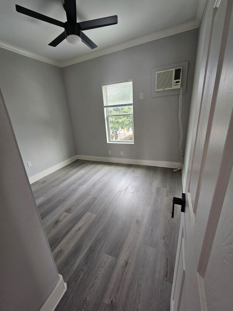 Priced aggressively!!! Located in the beautiful Heights area 3 mins from I-45, 10 mins from Downtown Apartment has all new waterproof vinyl flooring. Unit has Fridge, Electric Range with oven and Microwave Window A/C units on each bedroom and living room Laundry room on site, coin operated Walk-able distance to Travis Elementary School No pets allowed The rent Includes a monthly credit for water and gas Texting preferred over phone call, thank you