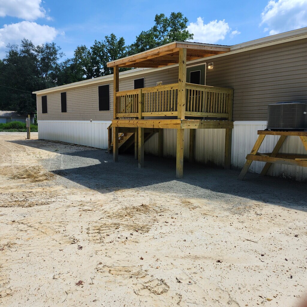 Move-In Ready Home – Welcome to this beautifully updated 5-bedroom, 3-bathrooms- doublewide mobile home. Thoughtfully refreshed and ready for new owners, this home combines modern updates with everyday functionality. Step inside to find new flooring throughout, fresh interior paint. The kitchen is complete with a refrigerator that will remain, along with a newer stove for added convenience. A recently updated AC system ensures year-round comfort. The outdoor covered front porch has booth a ramp and stairs. It is to die for. This move-in ready gem truly has it all—modern updates and outdoor extras—on 1 Acre lot- all in a peaceful, established neighborhood.