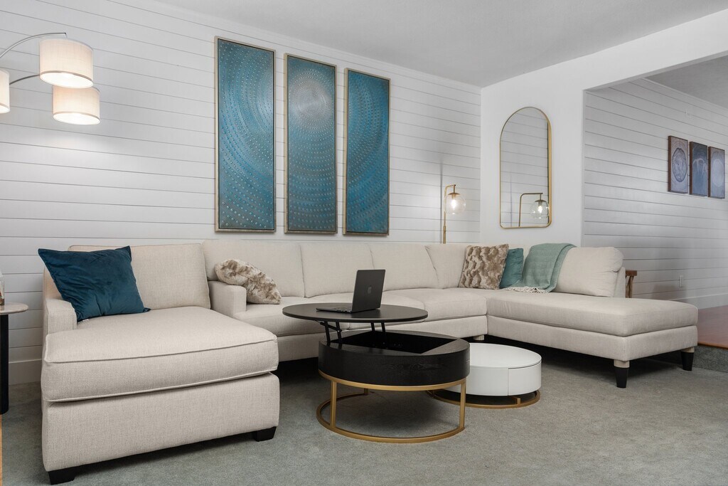 Furnished Mid-term 3 bedroom 2.5 bathroom rental home close to Munson Hospital & Copper Ridge Surgery center nestled in a quiet hillside neighborhood on the West side of Traverse City, MI. 5min from groceries, 8 min from the Bay, 10min from Downtown. This home boasts a wrap around porch, bonus activity room and 3 season porch which is cozy in the winter. The main floor has a sunken living room with ample seating for 6 with a convertible coffee table laptop station. The main floor Dining room seats 6 comfortably and a leads into the full kitchen with a central island. Also on the main floor is a 1/2 bath powder room, a studio/activity room and a 3 season porch great to look out over the tree tops and enjoy the skylights. 2 bedrooms (1 queen, 2 twin), an office space and laundry are on the second floor which boasts tree top views. The garden level has it's own private suite with a second living room furnished with seating for 4, a 3/4 bath with rain shower, a "kitchenette" for early morning coffee and night time snacks, and the 3rd bedroom which hosts a queen bed and the view looks out into a wooded area which deer frequent. The garden level has a private entry at the rear of the property.