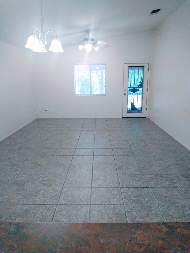 This stunning home offers 3 bedrooms, 2 bathrooms, and a spacious 1,980 sq. ft. of living space. The large kitchen boasts ample counter space, a generous pantry, and flows seamlessly into the dining and family areas, perfect for entertaining. The open floor plan and abundant natural light create a bright, welcoming atmosphere throughout. Recent upgrades include high-efficiency A/C and furnace, ensuring comfort year-round. Step outside to a backyard that backs up to open space, featuring a covered patio ideal for relaxing or entertaining. Enjoy the community amenities including a year -round pool, a gazebo - perfect for family gatherings or visiting with friends or neighbors. Tucked away in a friendly neighborhood yet conveniently close to schools, restaurants, shopping, and I -10, this home truly has it all. Don't miss your chance to make it yours! Pets allowed -terms negotiable.