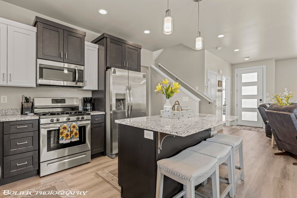 Welcome to your dream retreat at Cliff View Cottages, some furnishings included! This luxury modern townhome boasts the perfect blend of elegance, comfort, and breathtaking surroundings. With 4 bedrooms and 3 bathrooms, it offers ample space for you and your loved ones to live and unwind, stunning LVP flooring and high end carpet throughout. Step into the heart of indulgence with the gourmet kitchen featuring custom cabinetry that adds a touch of sophistication. Preparing meals here will be an absolute pleasure as you enjoy the convenience of modern appliances and the exquisite design. The allure of this townhome extends outdoors to a private patio, where a world of relaxation awaits. Imagine soaking in the inviting hot tub, while the crackling fireplace casts a warm glow on the comfortable furniture surrounding you.