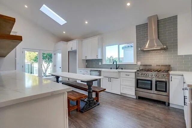 One of the last remaining craftsman styles SFR homes in San Pedro completely remodeled from top to bottom with an eye on esthetics. When you enter the front door, you will be amazed at the volume with the vaulted ceilings open floorplan and the quality of the finishes, featuring a cook's kitchen beautifully tiled new gas economy efficient appliances, 6 burner stove high efficacy refrigerator forced air heating new washer dryer new refrigerator huge private back yard completely fenced producing orange tree huge 2 car garage a private attached man cave or office alley access. - Large Bonus 500 sq/ft Room (connected to garage) - 2 car Garage - Fully Renovated - New appliances - Large backyard Pet Policy Negotiable