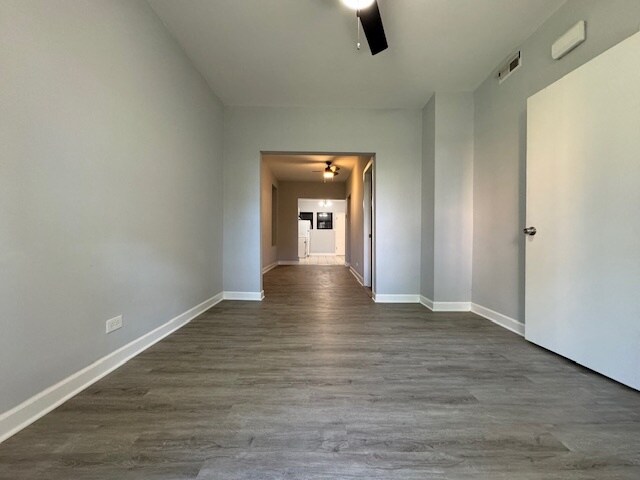 Fantastic price for a renovated 2-bedroom in Logan Square. Enjoy new hardwood floors throughout the living areas and bedrooms. The living room features bay windows with northern exposure. Entertain in the separate dining room. The kitchen boasts brand new white appliances, quartz countertops, black subway tile, and white cabinets with black pull tabs. The bathroom is similarly updated to match the kitchen. Both bedrooms offer ample closet space. Free laundry is conveniently located just outside the backdoor. The shared backyard is perfect for grilling and summer gatherings.