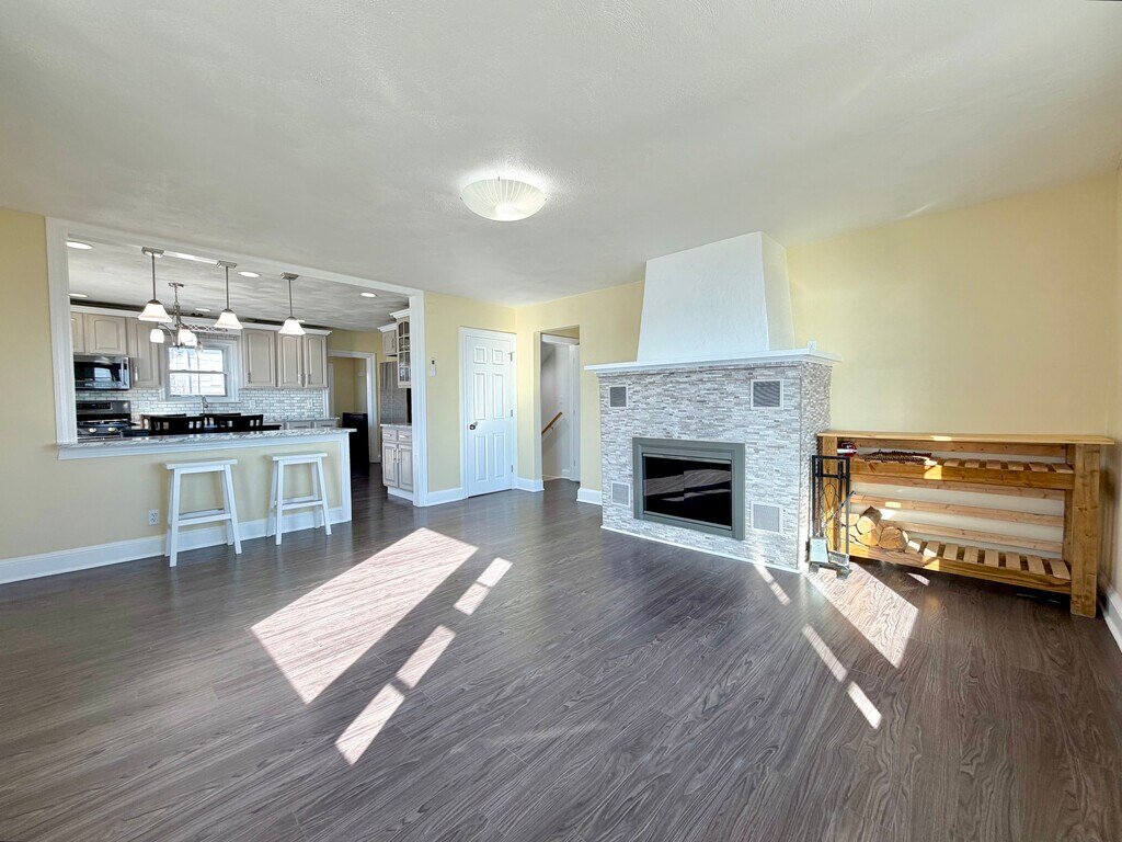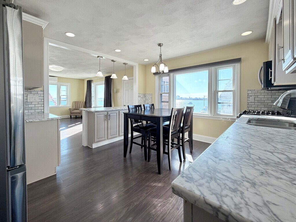 Available now! Rare opportunity to live in a spacious 3-bedroom, 1.5-bath home in East Boston with sweeping views of the Boston skyline. This roughly 1,400 sq ft unit spans the second and third floors and features a private entrance, excellent natural light, and a layout offering both space and a ton of privacy. The main floor has the updated kitchen with ample cabinetry, and a breakfast bar. This flows into the well-lit living room with fireplace and amazing views. The main bedroom and bathroom round out the floor. The second floor has two large bedrooms with one including a half bath. Each bedroom is equipped with its own mini-split system, providing efficient heating and cooling year-round. The home has generous closet space and in-unit laundry. One of the standout features is the large shared deck overlooking the water and city, an incredible place to relax or take in the skyline views. Driveway and street parking available. Conveniently located close to the Blue Line for an easy commute into downtown Boston, along with quick access to the waterfront, parks, restaurants, and neighborhood amenities.