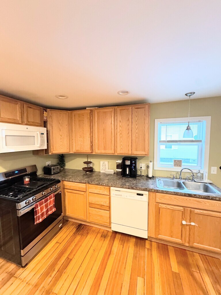Fully remodeled on the exterior (new roof & siding) with a freshly painted and hardwood refinished interior ON THE FIRST FLOOR! Prime location in Westfield NEXT TO A PARK brand new refrigerator. New washer. 2 bedrooms and a bathroom with a kitchen and living room. Gas heating with dedicated washer & dryer in the basement. Right next to a park!! Walking distance to downtown, away from the main road with a safe street for families! First & last to move in! Pets welcome.