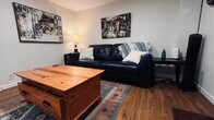 2 bedroom 1 bath pet friendly apartment with plenty of perks for the right price. Rent is $1800/mon and includes utilities, private high speed internet, so you won't be slowed down by other apartments using wifi, (1 gig per second plan) Parking in the driveway feet away from the front door, so you won't get soaked carrying in groceries, and FREE laundry machines. A large well maintained fenced yard is accessible through the back door, with a picnic table and park style grill, under a shady maple tree. Garden space is available upon request. There is a shared storage shed for all 3 units, with room to store bulky items or bikes. Spacious living room includes a leather couch, coffee table, side tables, Roku TV with sound-bar and multi color led backlights. Living Room has dimmable lights. There is Cadet wall heaters in each room, a portable fan, and levoit air filters.There is plenty of sunlight through the egress window, and blackout curtains in the bedrooms. The kitchen is complete with everything you need for a short to midterm rental (or longer) dishes, cookware, flatware, Brita water filter, tea kettle, French press, seasoning and more. The primary bedroom is spacious, with a queen size bed, full size couch, office desk, dresser with plenty of room to spare. There is a double wide mirror closet. Secondary bedroom includes Full size bed, dresser, office desk, and doublewide/mirrored closet. Both Bedrooms have brand new white sheet sets, brand new large & extra large white bath & hand towels, and brand new dish towels in the kitchen. Owners replace everything as needed and/or requested, you won't have to wait for repairs if something goes wrong. You can check out our reviews on furnished finders, we are listing this property for the first time on this platform, so no reviews yet. Thank you for considering this apartment, and we look forward to welcoming you to your home away from home!