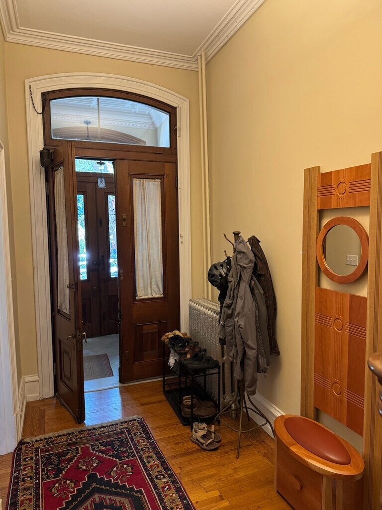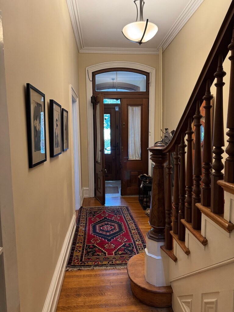 One of the most beautiful homes in historic Powelton Village located next to Penn and Drexel Universities. With Large front porch as well as porch swing and including front, side, and back yards there is amazing access to outdoor space! The owner's will maintain the extensive gardens on the property for you to enjoy. Enter through the beautiful wood front doors into a marble floored vestibule. Then through another set of large wood doors into the main hallway with the ornate staircase and banister in front of you the a VERY large living room with enormous windows on your right. Walk straight back and enter into a large dining room with half bath and storage closet. In the rear of the house is the newly redone kitchen and behind that there is a flex space with washer and dryer as well as access to the rear yard. Go up stairs and the master bedroom is in front of you with large glass and wood doors as well as a ensuite bathroom. Go up 3 stairs and there are 2 more bedrooms and another full bathroom. This is a perfect quiet nook for professors with families or grad students. Very close to numerous public transportation options and 3 blocks from all of the shops on Lancaster Ave.