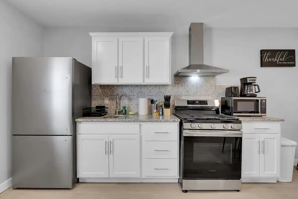 Our home is ideal for active duty professionals just 3 minutes from Ft. Bliss Cassidy Gate or business travelers needing a relaxing stay. Enjoy super fast 360 Mbps WiFi, a fully equipped kitchen, and a cozy living area with a 55" 4K TV. Walk to local dining like Chicos Tacos and Ostionery Montes. For outdoor enthusiasts, McKelligon Canyon and Sugaloaf Summit are a quick 5-minute drive. Private parking and concierge services available. We offer invoice paperwork upon request.