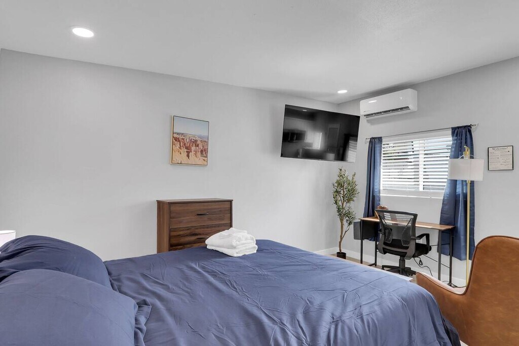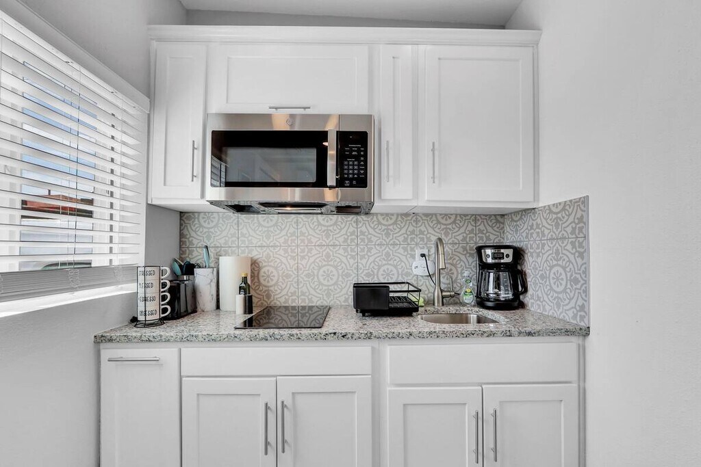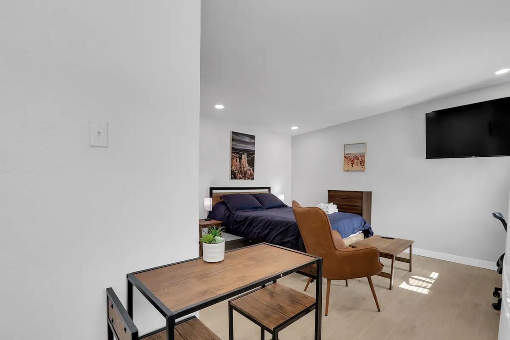 Perfect for professionals or travelers, our studio is 3 minutes from Ft. Bliss Cassidy Gate. It offers a kitchenette with an induction cooktop, 346 Mbps WiFi, and a cozy reading sofa with a 55" 4K TV. Walk to local dining like Chicos Tacos and Ostionery Montes. Outdoor adventures are just 5 minutes away at McKelligon Canyon and Sugaloaf Summit. Enjoy private parking, concierge services, and personalized attention. We offer invoice paperwork as needed for your stay.