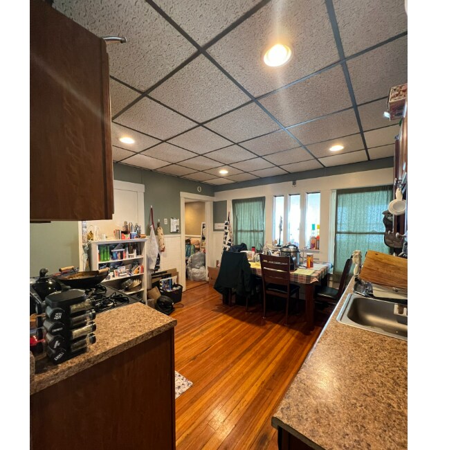 - 2 bed/1.5 bath (first floor) - Updated eat-in-kitchen (modern appliances, granite counters, newer cabinets, etc.) - Hardwood floors - Bonus sunroom/enclosed porch - Shared backyard - Coin-op laundry in basement - One (1) TANDEM off-street parking spot in the driveway included
