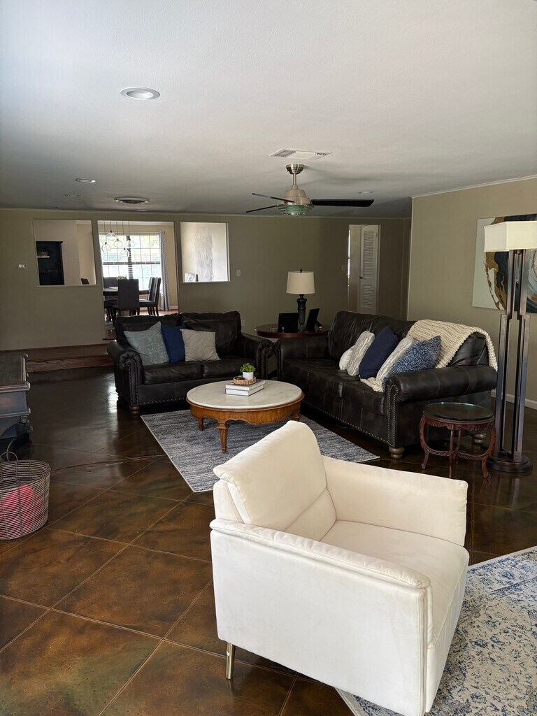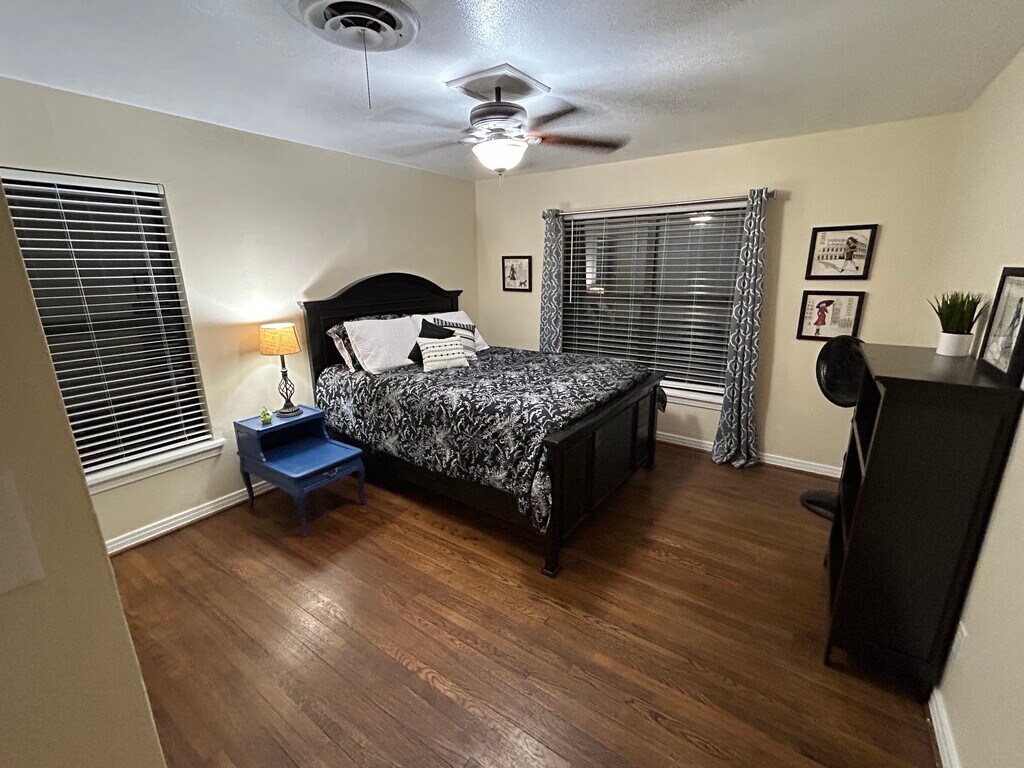 3 bedroom/2 bathroom fully furnished home 1/2 mile from TCU campus. Newly renovated home. Gas heat and electric A/C. Nee tankless hot water heater. Great backyard backing up to a church. Parking in circular driveway for three cars without blocking each other. Well maintained and fresh renovations in guest bathroom, living room and den.