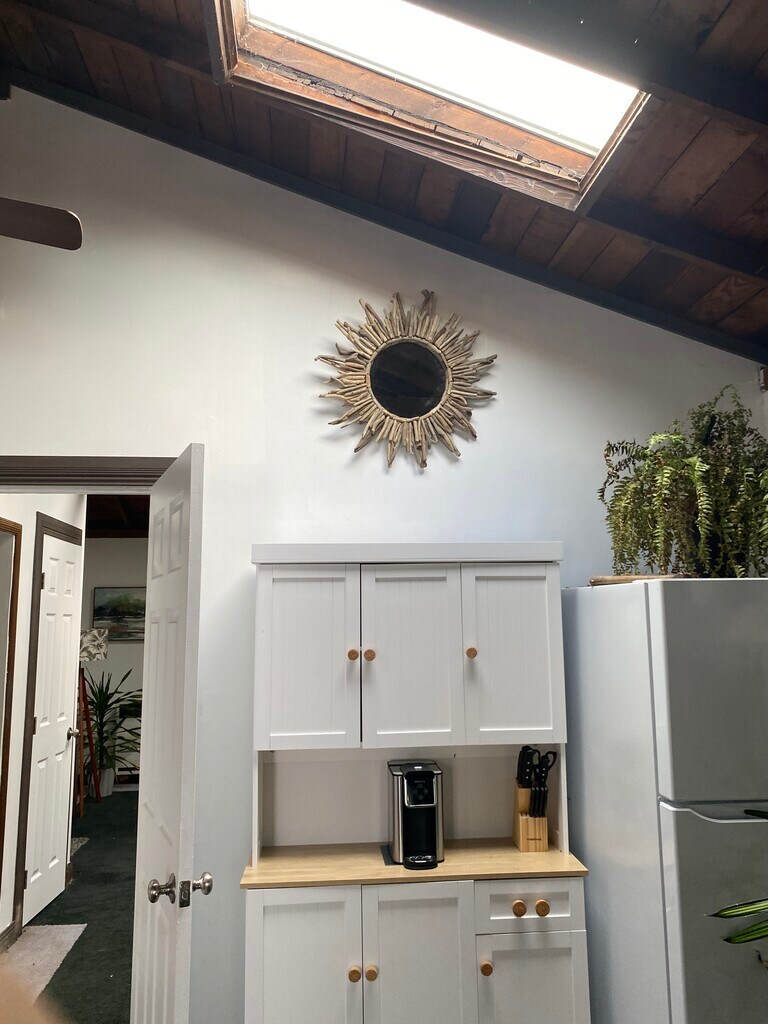 Steps to bay, rock fireplace in bedroom, fully furnished, and all utilities incuded! 12 ft. vaulted cielings with 3 skylights, 75 and 50 inch tv's, brand new 11 cycle dw, AC, heat, 8 in 1 oven/deepfryer. Shared back yard includes palapa, flagstone and Bullet 28 inch built in BBQ Have a small golden names Luna