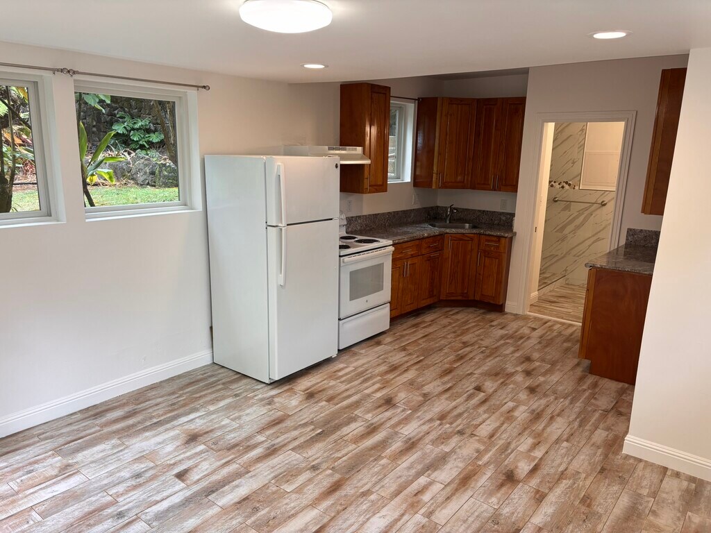 AVAILABLE FOR VIEWING AND MOVE-IN SUNDAY MARCH 29, 2026 Please call or text Jared any day between 9am-7pm to arrange a viewing. Newly painted and remodeled this past week, beautiful ADU apartment in the downstairs corner of our house. - Upper Manoa, just 5 minutes from the University of Hawaii - Bus #6 stops directly in front of the house, and goes to University of Hawaii, Ala Moana etc. - Super clean, with porcelain tile floors, kitchen and bathroom granite counters - Completely painted, deep cleaned last week. - Very quiet neighborhood - Bright and breezy with plenty of windows. - Very private with an entrance on the opposite side of the house with exclusive use of the front yard and a large outdoor patio (about 3000 sq feet of outdoor space). Every two weeks yard service is included in the utility price. - 1 off-street parking space - Cat is OK, but no dogs allowed. - Washer/dryer included (outside the apartment). - Semi-furnished, with kitchen appliances/washer/dryer included - Utilities not included (Electricity, water, high speed internet, garden service combined are $225/month ... add $100 if occupied by 2 people). If you have a portable air conditioner you want to use, this will cost extra for electricity - to be agreed depending on your usage, size, etc. Private showing is available by appointment - please give Jared a call any day between 9am-7pm.