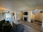This beautifully updated townhome in a wonderful interior location comes nearly fully furnished and decorated. The gorgeous kitchen has stainless appliances, tile backsplash, spacious quartz counters and a pantry. Also on the main floor are the dining area with ceiling fan, a large living room with gas fireplace, a convenient powder room with quartz vanity, and vinyl floors. The kitchen is fully stocked with accessory appliances, dishes, and utensils. Also present on the main floor are a large, mounted television, living room couch and side tables, coffee table with storage, and a dining room table. You can relax on the large front patio or elevated deck. Upstairs are 2 large bedrooms with ceiling fans, each with its own full bathroom with quartz vanity. A full-sized washer and dryer are present inside the townhome on the lower level. The huge 2-car attached garage with direct entry to the townhome and the extended driveway afford excellent parking options. The townhome is located near numerous shopping and restaurant options. Highway 85 is 3 miles to the east, and it's a pleasant drive or bike ride to the UNC campus via Reservoir Road. Rent includes water and trash removal. Resident pays for gas, electric, and cable/internet. $35 non-refundable application fee for each adult resident. Minimum 720 credit scores required. Strictly no smoking. No pets.