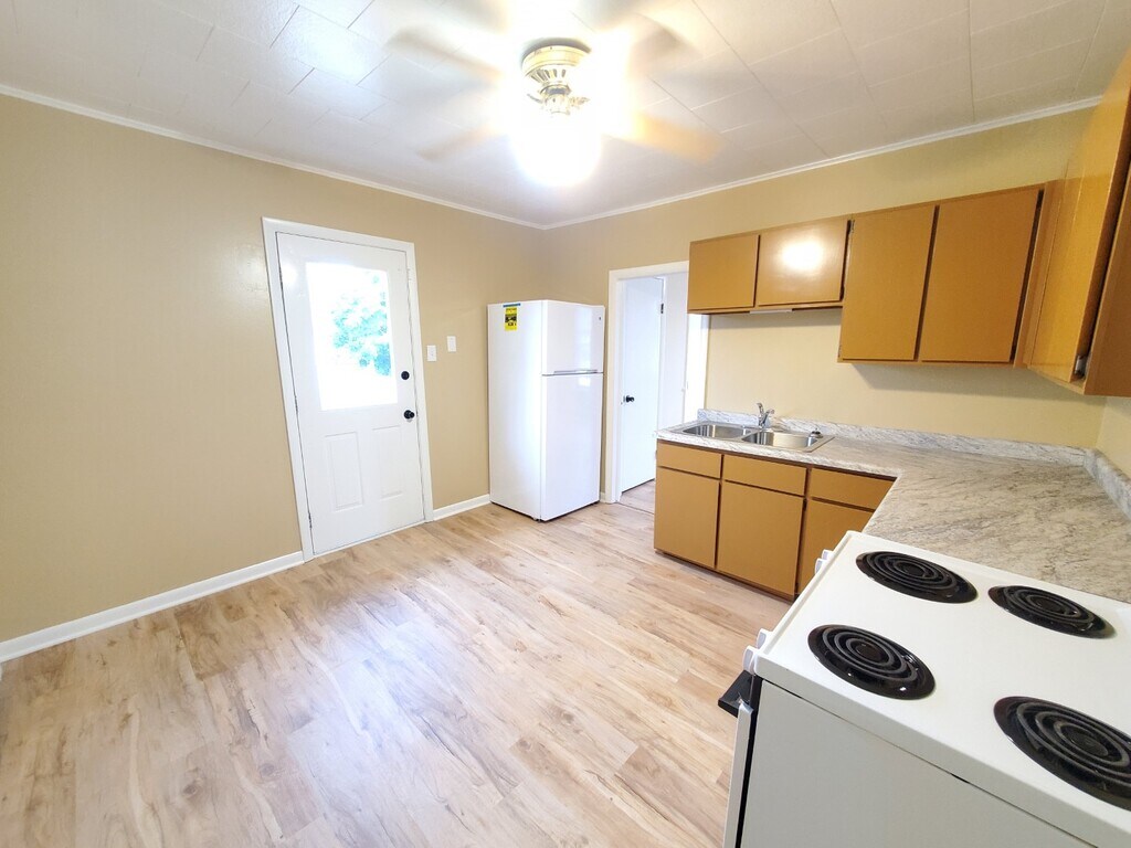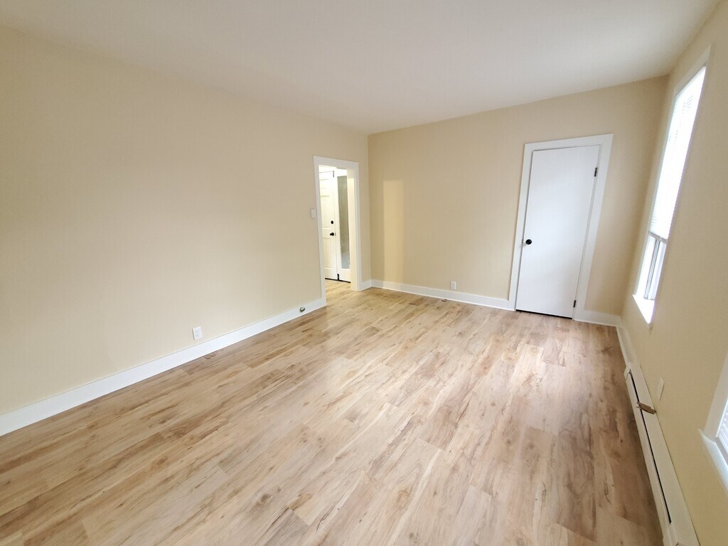 Spacious 1 BD, 1BA Upper duplex unit. New LVP flooring throughout, completely new bathroom. Walking distance to hospital and downtown. Big backyard and off-street parking. Plenty of closet space, refrigerator and stove as well as counter space. A/C window unit in bedroom, electric baseboard heat w/ individual t-stats in each room, ceiling fan in kitchen. Leases are Month to Month, longer term leases considered upon established rental history.