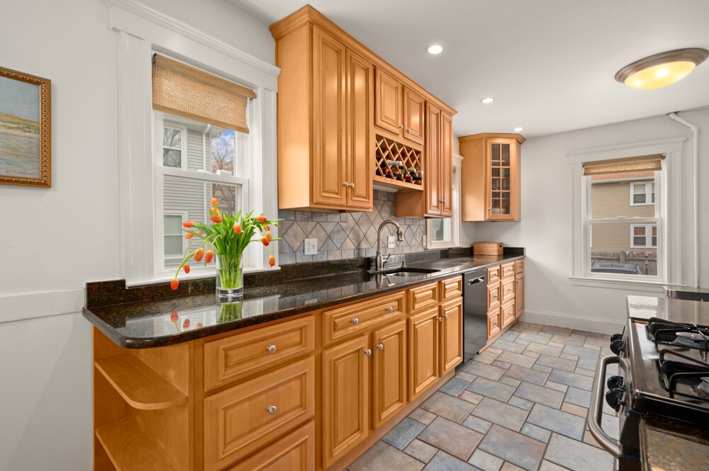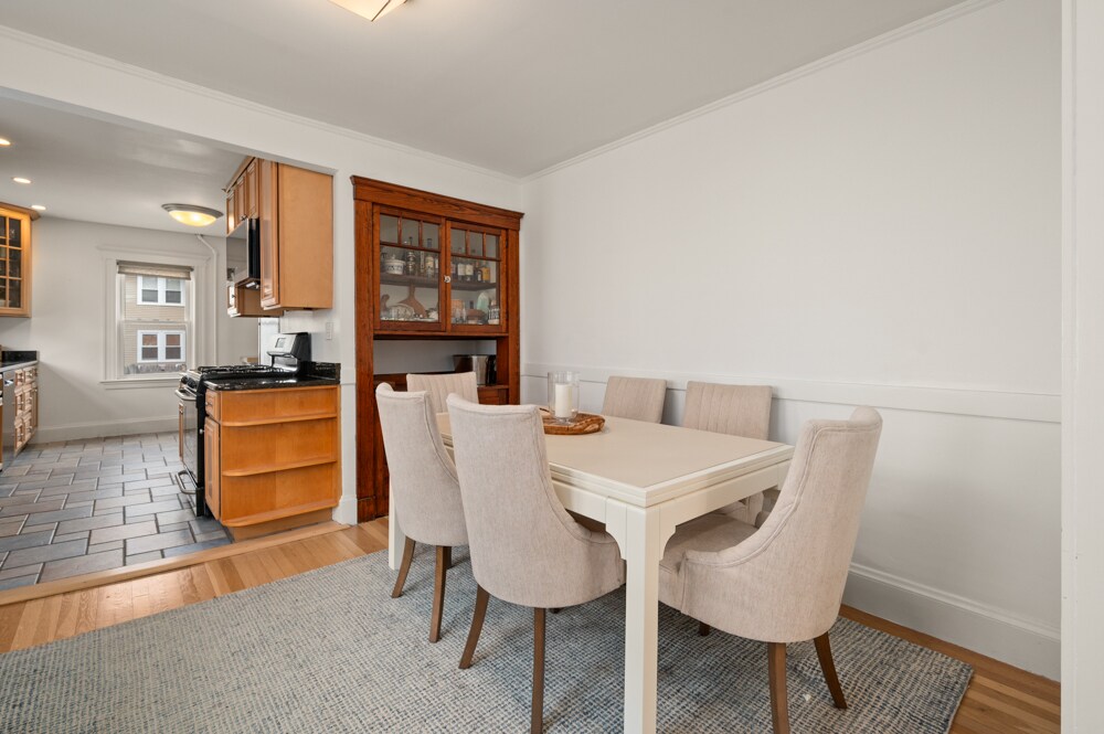 1 Garage parking space included! Freshly painted! New bathroom! This beautifully renovated first-floor, two-bedroom, one-bath condo offers five spacious rooms and is filled with natural light. The modern kitchen boasts maple cabinets, granite counters, a gas range, microwave, dishwasher, disposal and is open to an inviting dining area with built in hutch. The living room offers plenty of space for entertaining. Other amenities include: parking for 2 cars (includes 1 garage space), newly refinished hardwood floors and overhead lighting throughout, large windows, in unit laundry, dedicated storage space in the basement. Easy highway access, close to shops, restaurants and more! Pets considered on a case by case basis. Water Included! Available 6/1/26