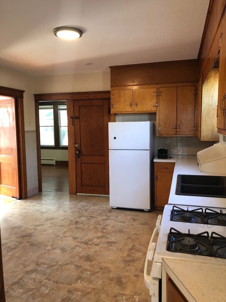 Open House Saturday Feb28th 8am-12pm. Ready for immediate occupancy. Updated bathroom, Original kitchen cabinets in excellent condition. Newer kitchen sink and faucet. High efficiency ductless split for ac and supplemental heat. Primary heat is gas fired. Fenced in shared back yard. Off street parking. Laundry hookups in basement. Walking distance to UNH. All utilities paid by Tennant. Water paid by owner.