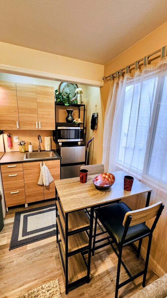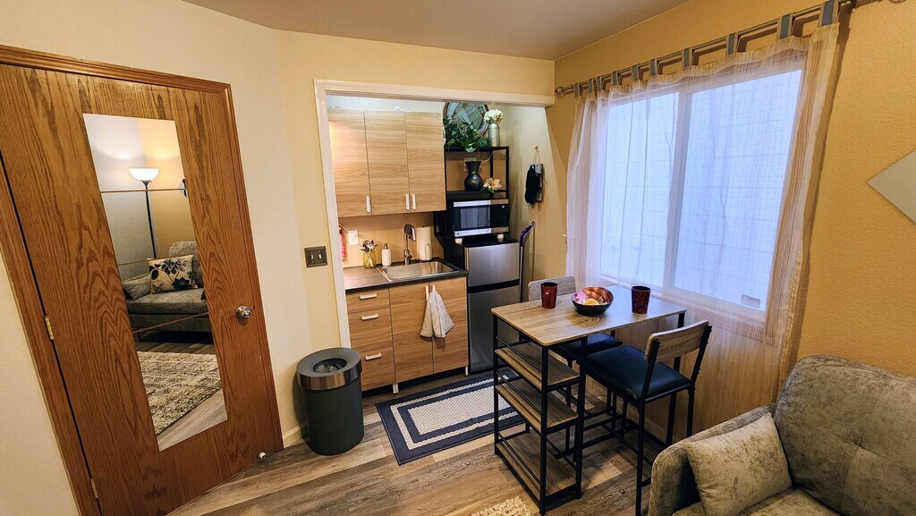 Newly renovated 1 bedroom apartment, attached to single family ranch style home. Separate unit with private entrance, and no shared space. Den with kitchenette and dining area, sitting area and TVs throughout. All fully furnished (or unfurnished if needed) new furniture and appliances. Private new washer/dryer in unit. Front private patio for rental tenant only. Accommodates 1 person preferably and small pets considered. What makes my place a treasure is comfort, peacefulness, coziness, safe and everything you could want your home to be and much more: - Utilities included (wifi, heat/water, electricity) - snow removal and lawn service provided - both trash and recycling provided, by front door and picked up once per week - free storage available depending on items/size - flexibility of lease lengths and parameters unlike commercial facilities - park at your front step, easy access and private street parking directly in front of house - pool, park,and pickle ball across the street - minutes to downtown and mountains, lakes, all things Colorado and near bike path that surrounds loveland - owner/myself quiet peaceful respectful and tranquil lifestyle - safe, 15 years owned on location with no criminal activity in the neighborhood (sondbirds meadow/cardinal avenue) -24 hour outdoor security perimeter Blink cameras-12 total - exceptionally clean and entire home kept; no bugs, or rodents - managed 24/7 and any maintenance will have immediate response - home is well maintained, such as central air with new furnace and a/c installed 2023, commercial grade extra large hot water heater, brand new kitchenette, brand new appliances, brand new toilet -prior renter reference available Please inquire via text or message here with any questions; or to book a tour. ~Truly a place to call home