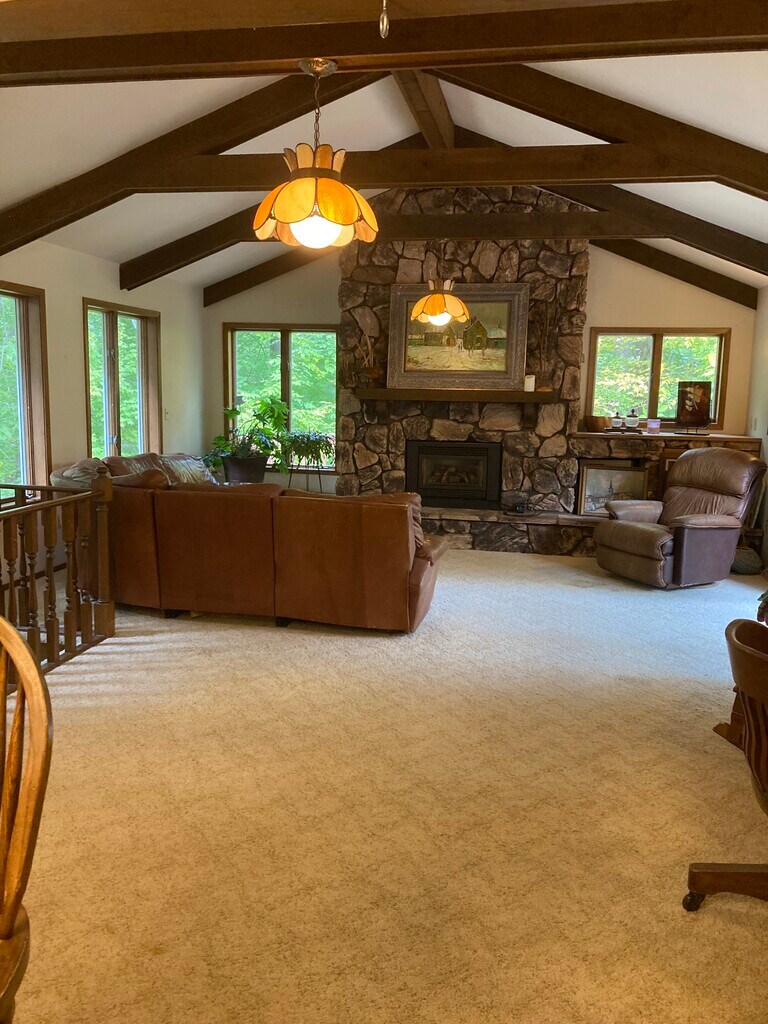 Large single family 4 bedroom walkout ranch with vaulted ceilings nestled on 15 acres in the beautiful village of Hobart. Perfect location in Hobart close to highway 29 & 172 , just 5 minutes to Austin Straubel airport. 10 minute drive to Lambeau Field. Seven minute drive to St. Mary’s Hospital., 13 minute drive to St. Vincent and Bellin hospitals. Seven minute drive to Saint Norbert College. Lots of windows and sliding doors let an abundance of light for you to enjoy in your private and secluded wooded lot. Large living room and separate large family room, both featuring fireplaces and large sectional couches with plenty of seating areas with La-Z-Boy rockers. Beautiful new hardwood floors throughout. Large expansive, backyard deck that has direct access right off the family room. An abundance of beautiful nature and animals, including foxes, lots of deer and turkeys. Bonus room or 5th bedroom in the lower walkout with your own private sliding door. Jacuzzi style bathtub with easy access door. Attached garage. 50 inch smart TV in living room smart TVs in the bedrooms. Select comfort mattresses in second master bedroom with your own personal sliding door access to the deck. Smart TVs throughout. Wi-Fi and all utilities included! In unit laundry. Located in exclusive and beautiful Hobart yet just minutes from grocery stores, restaurants and shopping. Plenty of walking trails right behind the house and just a 10 minute walk to the quarry. Less than a mile from 2 well-known golf course courses. Two months minimum. Fully furnished unit includes utilities. No smoking allowed anywhere on the premise. No pets allowed. Two month minimum required.