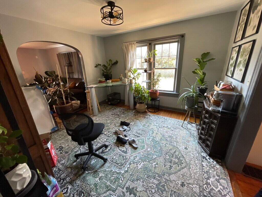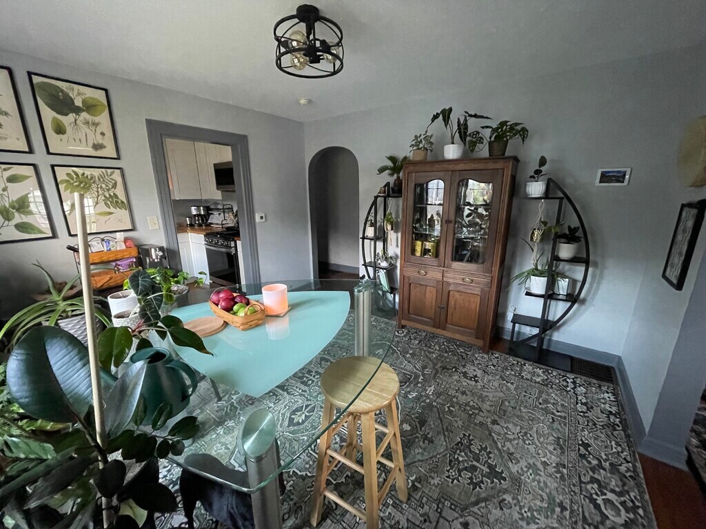 This is one room in 1926 duplex with all new appliances and finishes ready to rent. Public spaces are shared with another renter. Room is furnished but can be provided with furnishings removed.