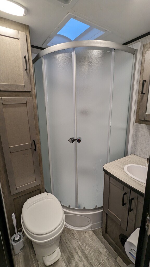 Single , almost brand new RV trailer situated on private driveway. Close to freeway ans shopping. Quiet neighborhood and safe, family friendly community.
