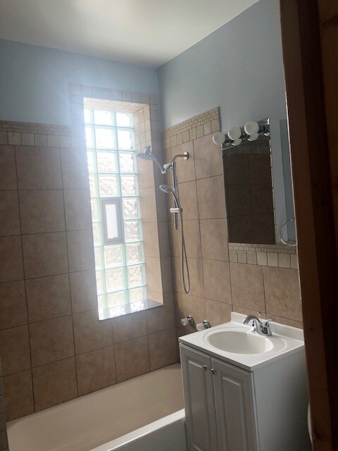Newly remodelled Garden, loft-type apartment. Open concept kitchen-dining and living area lit with natural light. Tile floor, handmade custom woodwork, oasis of ceiling lights, stainless steal appliances with, gas stove and oven. Very elegant bathroom with a bathtub and a shower stall and a high class vintage style vanity sink cabinet. Bathroom accessible from the master bedroom and from living area. Lots of closets. Laundry room located at the rear entrance of the apartment. Easy access to public transit in booming Logan Square. Couple blocks to trail 606. Close to Blue Line.