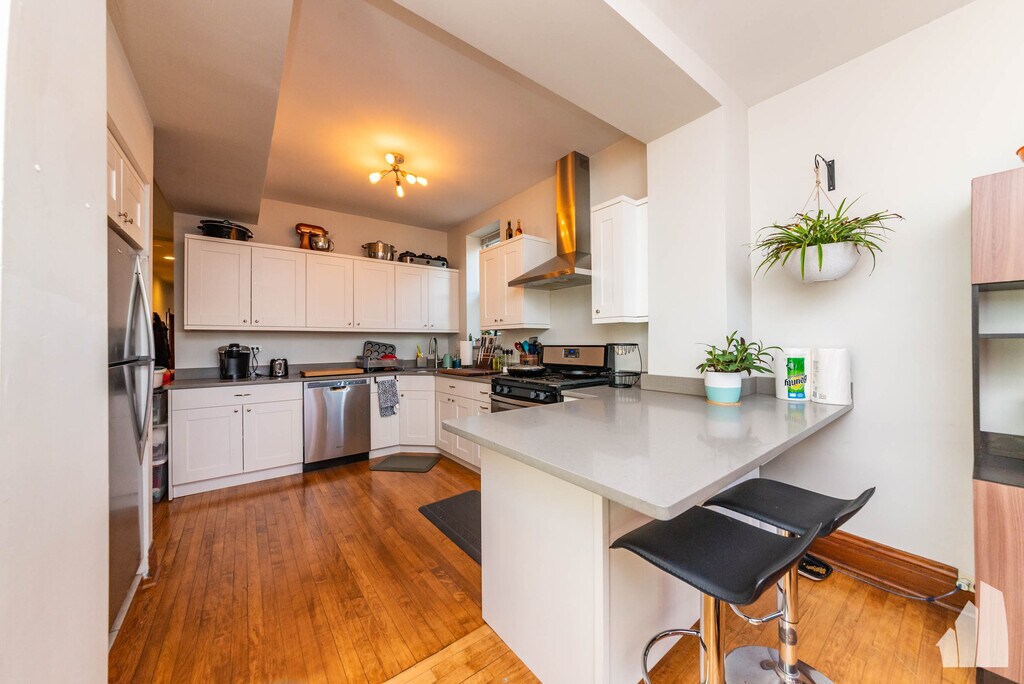 This sunny top floor unit was very nicely updated! There is nothing else like this at this price. 3 bedrooms and 2 full baths! 2 garage included in the price! Available February 1., possibly sooner! This unit has lots of windows in Lakeview, was renovated in 2018 w/ quartz countertops & stainless steel appliances. Side by side full size washer/dryer in unit. Hardwood floors throughout. Very spacious w/ large living/dining rooms, and eat-in kitchen. Central air/heating. Pets negotiable. No security deposit, there is a move-in fee of $300 per adult. Pet fee $300 per pet, 2 pet maximum. Great Lakeview location! Steps to Wrigley, Red and Brown line, Whole Foods, restaurants, shops, and the lake and Lakeshore Drive.