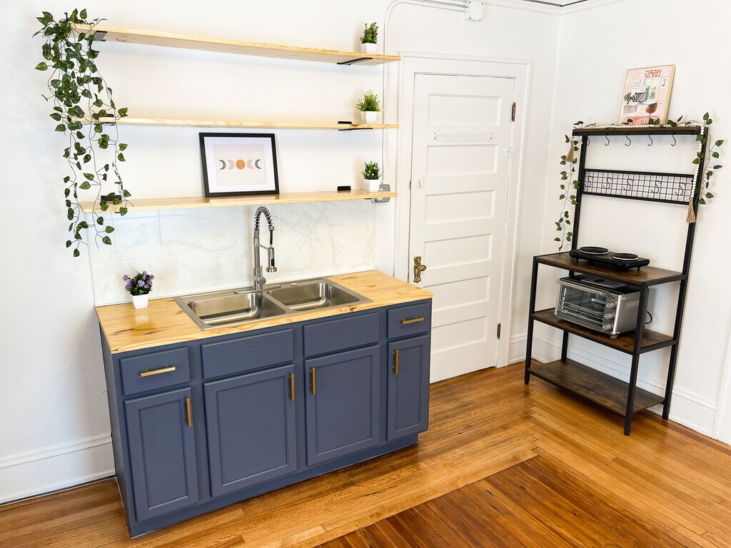 We have 1 private room available with a shared bathroom located on the second floor. Each unit comes with closet space, sink, shelving, air fryer toaster oven, and hot plate. This unit is renting for $560 Please note that there is a shared bathroom for the micro-efficiency & efficiency units. That said, the tenants sharing this common bathroom are very considerate with regard to this feature. Along with the rest of the building, this bathroom has been redone to create a modern and comfortable space. The common areas may be exclusively utilized as lounge/study space by tenants occupying the efficiency units.