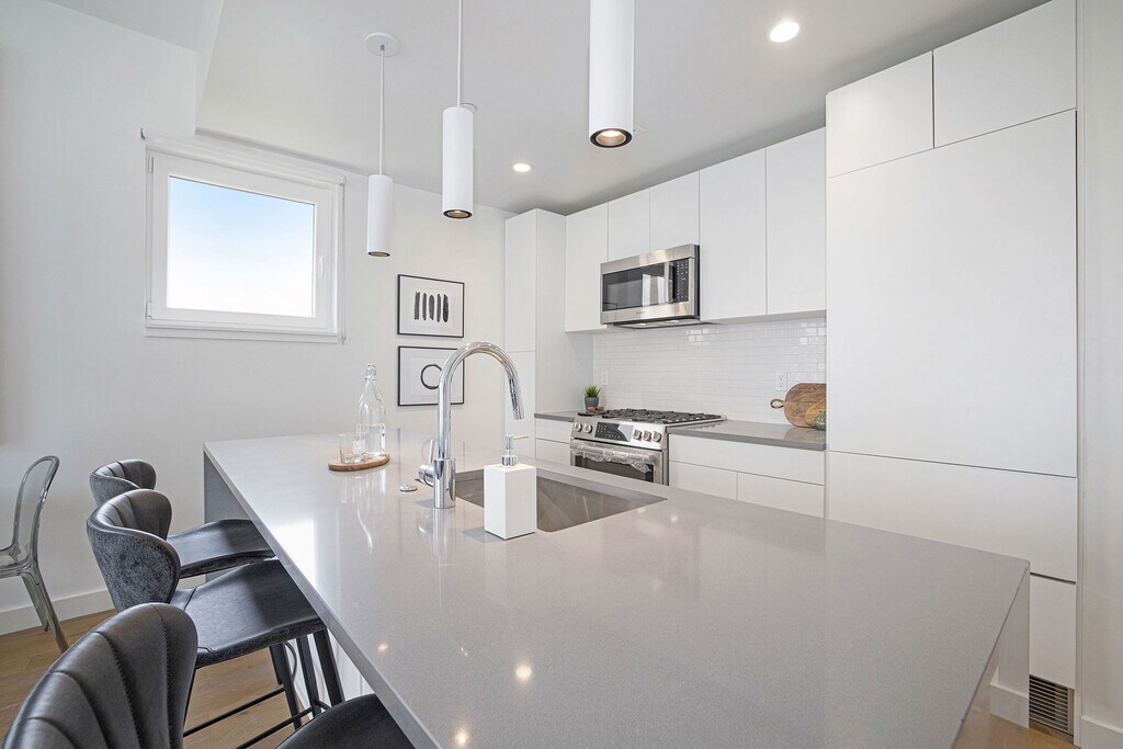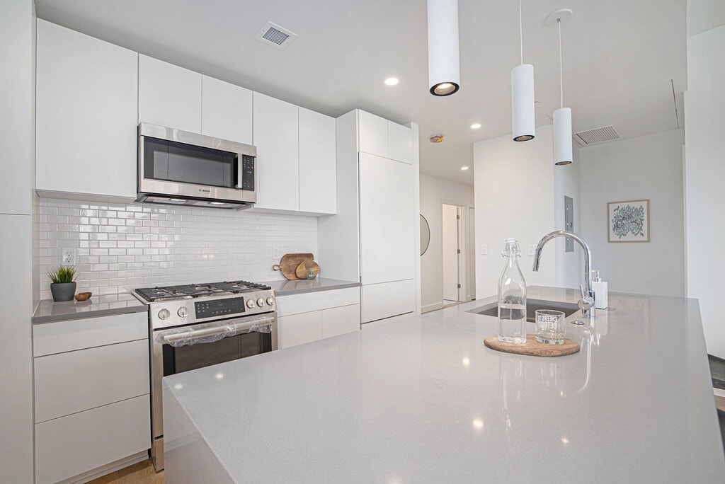 SECURE PARKING, IN UNIT LAUNDRY, ROOFTOP, GYM, DOG WASH, VIEWS, + MORE! Welcome to 4th & Selden, Midtown's newest boutique luxury apartment building. This corner 1-bedroom features an open floor plan with wide plank wood flooring, 9 ft. ceilings and plenty of windows to create a flood of natural light. The kitchen is exquisitely appointed with quartz countertops, modern cabinetry and high-end Bosch appliances w/ built-in Liebherr refrigerator/freezer. Elegant bathrooms include Toto toilets, Grohe faucets, and a walk-in shower. Enjoy Bosch stackable washer/dryer! Amenities include: massive rooftop terrace, fitness and yoga studio, lounge/conference room, pet care room w/ shower station, designated package room, Butterfly MX virtual doorman, bike storage and secure resident parking. Located in the heart of Midtown, close to everything. *** NOTE: The rent price reflects the net effective rent rate***
