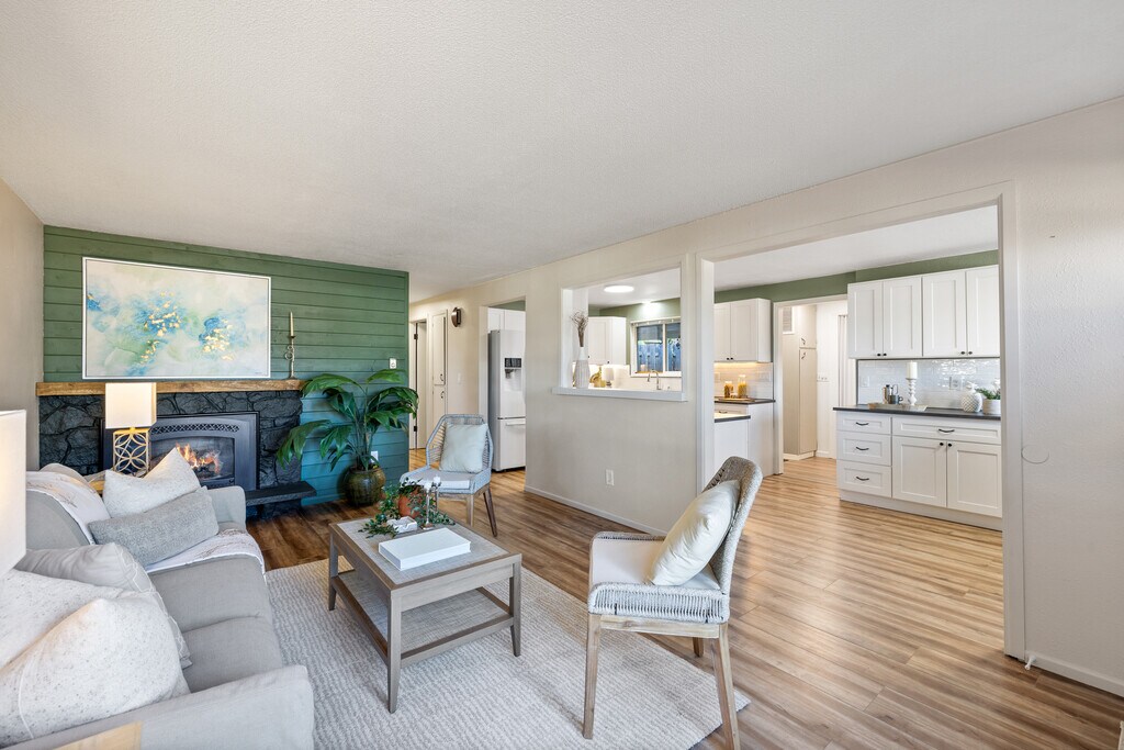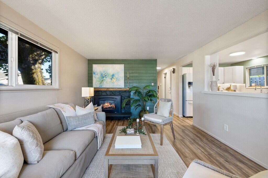This exceptional 4 bed 2 bath rambler located in North Tacoma has been completely updated, including a new primary bath, kitchen & LVP flooring throughout. The large updated kitchen and dining room provide ample cabinets and counter space with room for everyone! Freshly painted inside & out this home sparkles with charm! Enjoy the 90% Efficient Heat Pump/ Central AC, gas fireplace, covered Patio, fully fenced backyard, fire pit and additional storage shed. Located just up the hill from Pt. Ruston and down the street from Pt. Defiance Park, you have all the shopping, dining, beautiful park & waterfront at your fingertips!