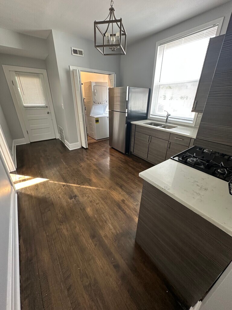 3733 W Addison St is a beautifully renovated, bright and spacious 3-bedroom, 1-bath apartment located on the upper floor of a classic brick two-flat in Avondale. Boasting 1,200 sq ft of living space, the unit features hardwood floors, an open living room and separate dining room, a modern kitchen with quartz counters and stainless appliances, and the rare convenience of in-unit laundry, an enclosed porch, balcony, and access to a shared backyard. Set in a commuter's dream location, it's only a short stroll to the Addison Blue Line station, with excellent access to major highways. The unit combines comfortable living with urban convenience ideal for those seeking transit-friendly city life with style and space. Owner Pays for water. Tenant will take care of Gas/Electric. 1 Parking spot IS included in the rent. Cats/Dogs are allowed for a one time non-refundable fee. No Security Deposit, but there is a move in fee. looking for a 1 year lease, open to longer.