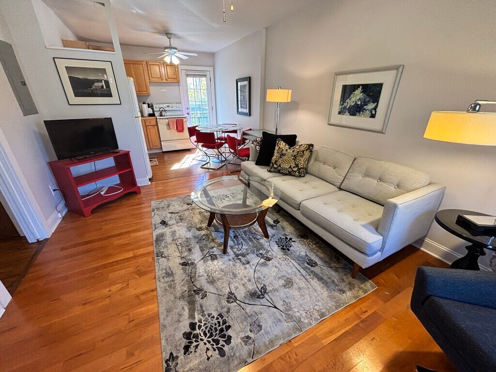 Enjoy the best of North Asheville living in this charming 1-bedroom, 1-bath apartment with modern furnishings and a private back deck. Open floor plan with hardwood floors and great natural light. Located just 10–15 minutes from downtown Asheville, this home offers the perfect balance of convenience and charm. Set in a unique, historic property with beautiful mature landscaping. Inside, you’ll find thoughtful, contemporary décor and everything you need for comfortable living — including a Smart TV, linens, cookware, and dishes. Just bring your personal belongings and settle right in! Additional amenities include on-site shared coin laundry and off-street parking. Sorry, no pets. $1,225 for a 1 year lease & $1,300 for 6-11 months - Includes Water/Sewer & Digital TV. Tenant pays for electric & gas. *Deposit is typically $1,525 but is on a case-by-case basis.