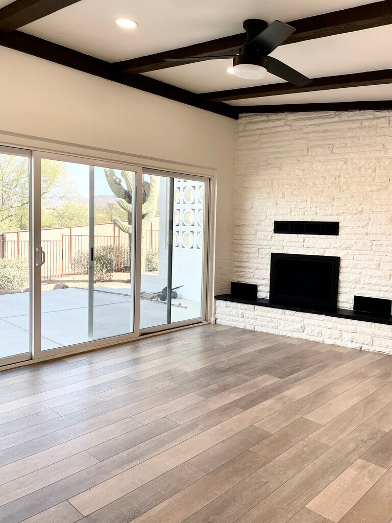 Enjoy your low-maintenance, highly peaceful life in the heart of Cave Creek - down the street to Frontier Town. This single-family home on a half-acre property is surrounded by natural desert and has a fully fenced backyard and RV gate for storage of your hauling toys. The house has been freshly updated with new appliances in the kitchen from a flat-top electric range and microwave oven to a full dishwasher and ice/water dispense refrigerator. The living room has a beautiful stone wood-burning fireplace as well as a wall of windows to overlook the north views of Cave Creek towards Elephant Mountain. The glass slider leads to a large patio for great outdoor entertaining. The two bedrooms have newly laid carpets and built-in closets and also with attractive views of the surroundings. The bathroom has an attractive walk-in shower, shelving storage and a separate vanity. The single carport leads to the laundry room and another patio in the back. There is plenty of parking in the turnaround driveway. Pets are limited to 2 dogs maximum and there is a pet deposit and monthly additional fee per pet. The house is not furnished but a furnishing option can be negotiated. Complete credit and background check required. *****Rent includes landscaping