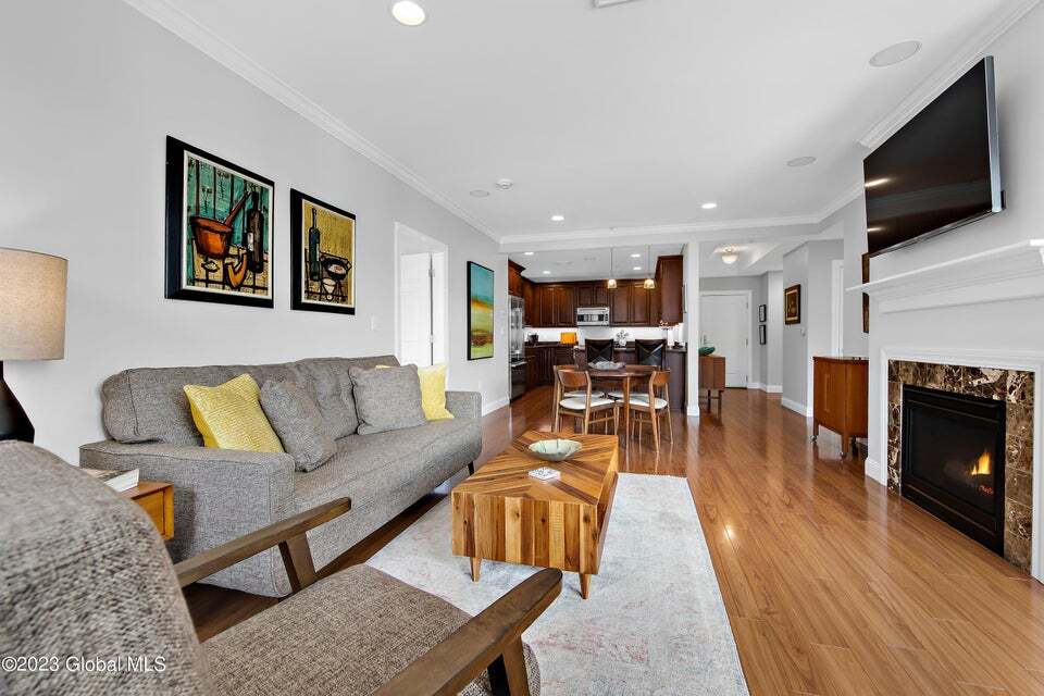 Fantastic Downtown Saratoga Springs Condo Experience the best of downtown living in this beautifully maintained 4th-floor unit. Enjoy a cozy living room with a gas fireplace, two spacious bedrooms, two full baths, in-unit laundry, and a private balcony — perfect for relaxing or entertaining. Forget the hassle of downtown parking — this home includes a designated space in the attached covered garage. The building also offers excellent amenities, including a Clubroom and Skydeck for gatherings and social events. Located just a short stroll from Broadway, you’ll be steps away from Saratoga’s renowned dining, shopping, and entertainment scene.