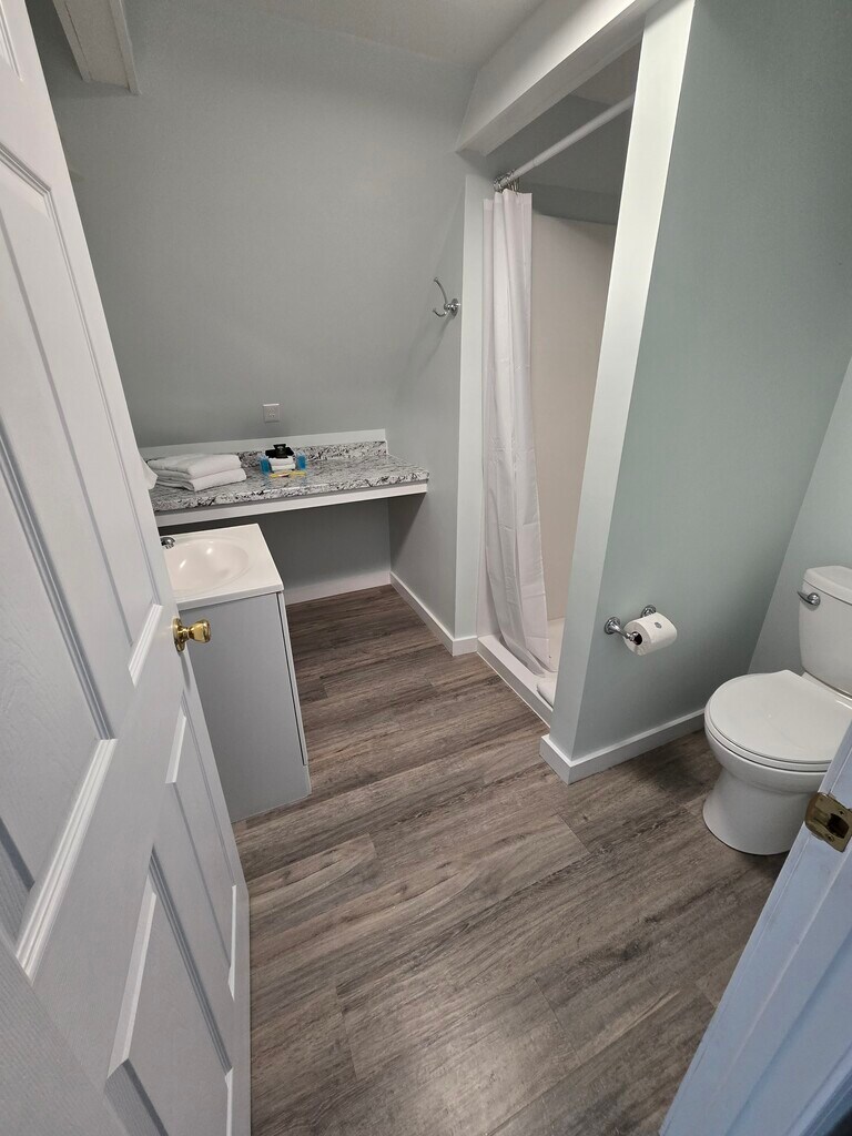 Our Linekin Bay Apartment is a second floor studio apartment featuring a queen sized bed. This newly renovated apartment offers a private bathroom and a kitchenette. This apartment sleeps 2. Our apartments are 2 blocks away from downtown Boothbay Harbor.