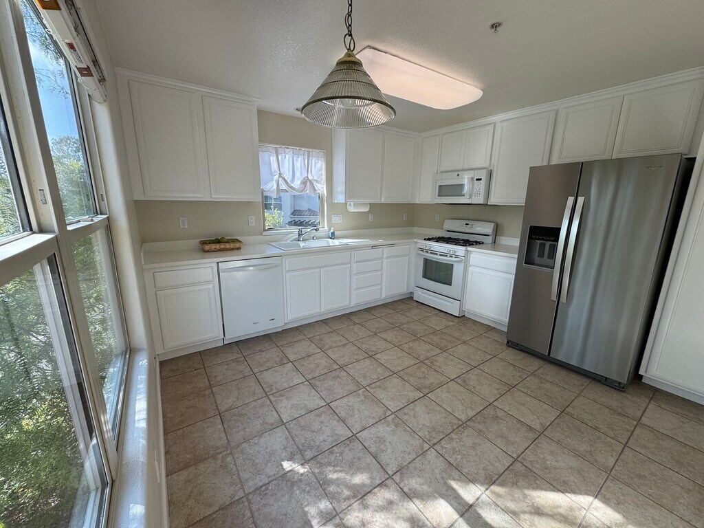Spacious, tranquil 3 BR/2 bath, upstairs end unit in beautiful Forte Ranch for lease, suitable for a non-smoking family of 5 maximum. Enjoy partial island and foothill views from large, private balcony. High ceilings in living room, dining area and computer station. Spacious, complete kitchen with Corian countertops, tiled floor, white cabinets, gas cooktop, microwave, dishwasher and refrigerator with exterior water spout & ice. Large master suite with walk-in closet and vaulted ceiling. Master bath with double sinks, oval tub, separate shower & extra closet; porcelain tiled. Fireplace, gas heating, air-conditioned, energy efficient dual pane windows, upgraded insulation, low flow toilets, automatic fire sprinklers and water softener system. Personal laundry room. 2 car garage & 2 car driveway parking (and visitor parking) with direct entry and remote control. Gardener and outside water/irrigation included. Common areas include: pool, jacuzzi, BBQ, community garden and playground. Utilities not included. Location: Lower S.B foothills off N. San Antonio Rd, between Turnpike and El Sueno. Designed by world renowned architect, Barry Berkus, and built by prominent contractor Hugh Thorson. Small, quiet, house-trained pet considered. One-year lease minimum $4,750/month with option to extend. Refundable security deposit $3,000 plus $500/pet deposit.