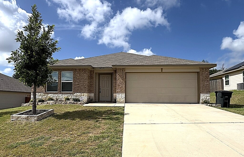 *2 WEEKS FEE* *LANDSCAPING INCLUDED* MUST SEE 3 bed, 2 bath, 2 car garage single family home located in Killeen! This gorgeous home will feel like home the minute you walk in! Formal dining or an additional living area is located to the left as soon as you walk in which leads into your kitchen/dining area! The kitchen is equipped with all black appliances; refrigerator, oven/stove, microwave and dishwasher! Plenty of cabinet and countertop space AND an island! All tile except in the bedrooms and formal dining/ extra living space area! This home does come with an utility room with washer and dryer hookups for your convenience! The LARGE primary bedroom features its own ensuite with a garden tub, separate shower, double sink vanity AND a walk in closet! Step outside to your fenced in yard with a covered patio to enjoy the views! DO NOT MISS OUT ON THIS GORGEOUS HOME! Call today to schedule a showing! *SORRY, NO PETS ALLOWED!*