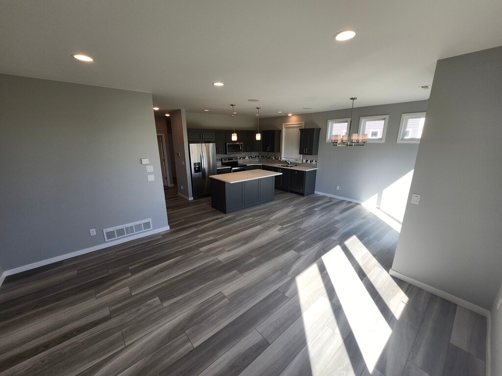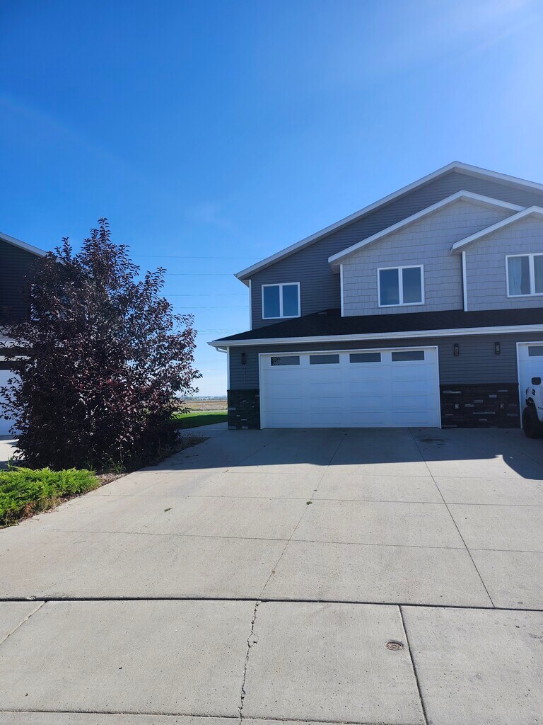 Near walking paths, a trail system, and city park, this beautiful twin home features a main level with tall ceilings that accentuate open living. The gorgeous kitchen showcases stainless steel appliances, quartz countertops, tiled backsplash, soft-close cabinets and an extra-large pantry; flowing into a grand living room with a tiled accent wall and modern gas fireplace. You'll also find a half-bath and a huge storage space. Upstairs is a generous living area and large laundry room with extra storage. The stunning master suite includes a master bath with a double sink vanity, quartz countertops, and a large walk-in closet with shelving. This level also has a full bath with a double/quartz vanity and 2 spacious bedrooms. The 24x24, finished garage has hot/cold water hookups, a floor drain and electric garage heater. This smart home features a 2-zone audio system, security system, and a video doorbell. There is a $100 per month pet fee. Tenant agrees to obtain renters insurance.