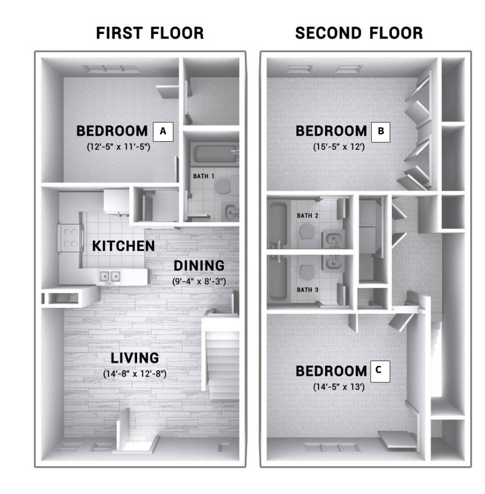 Apartment Unit: #203Apartment Model: #203 - 3831 Cherokee Woods Way$2,6253 Bedroom, 3 Bath, 1332 sq ftAvailable August 8, 2026