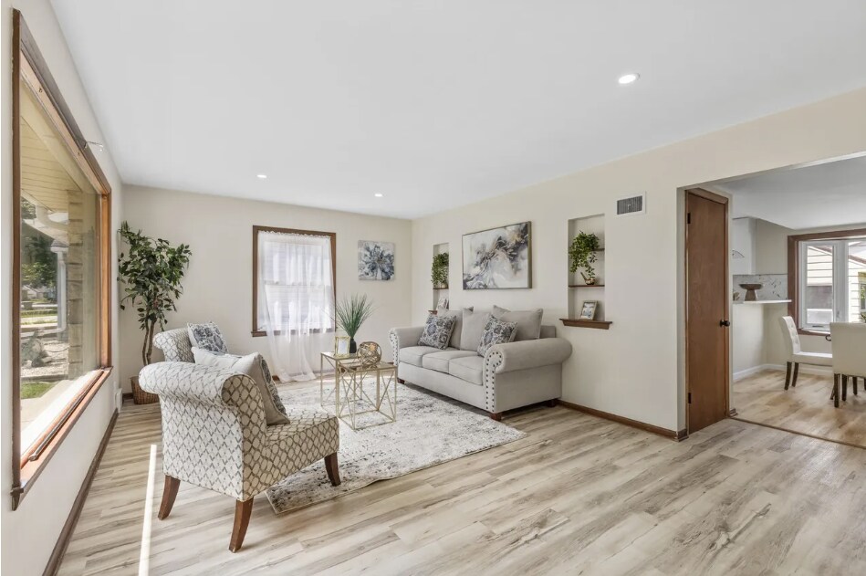 Welcome home to this beautifully updated Cape Cod move-in ready home near 58th and Forest Home. This spacious home features 3 bedrooms, 2.5 bathrooms and 1720 sq ft of comfortable living space. Highlights: Modern kitchen with quartz countertops, tile backsplash, new cabinetry and range hood. Large upper suite with ample closet space. Finished basement - great for rec room, office or extra living area. New roof, furnace & AC. Generous yard on a quiet and safe residential block. Detached garage and driveway parking. Conveniently located near shopping, dining, schools and easy access to main roads.