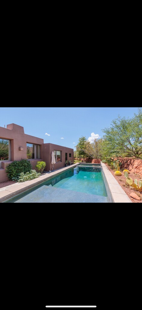 This beautifully-situated, 2514 square foot home, built in 2004 and located on a .44 acre lot, has beautiful views of towering red cliffs as well as the resort-like swimming pool. The home features concrete stained floors throughout. Solid core wood doors, 12 foot ceilings, and an open floor plan throughout, ensure plenty of natural light and plenty of spaces for entertaining both indoors and out. There's a very large dining island and built-in cabinetry. High ceilings, wide hallways and an emphasis on privacy and seclusion from inside the home. Outside, there are also two separate courtyards in addition to the expansive backyard. The cultural, dining and retail offerings of the nearby Kayenta Art Village make this the perfect home for your desert sanctuary.