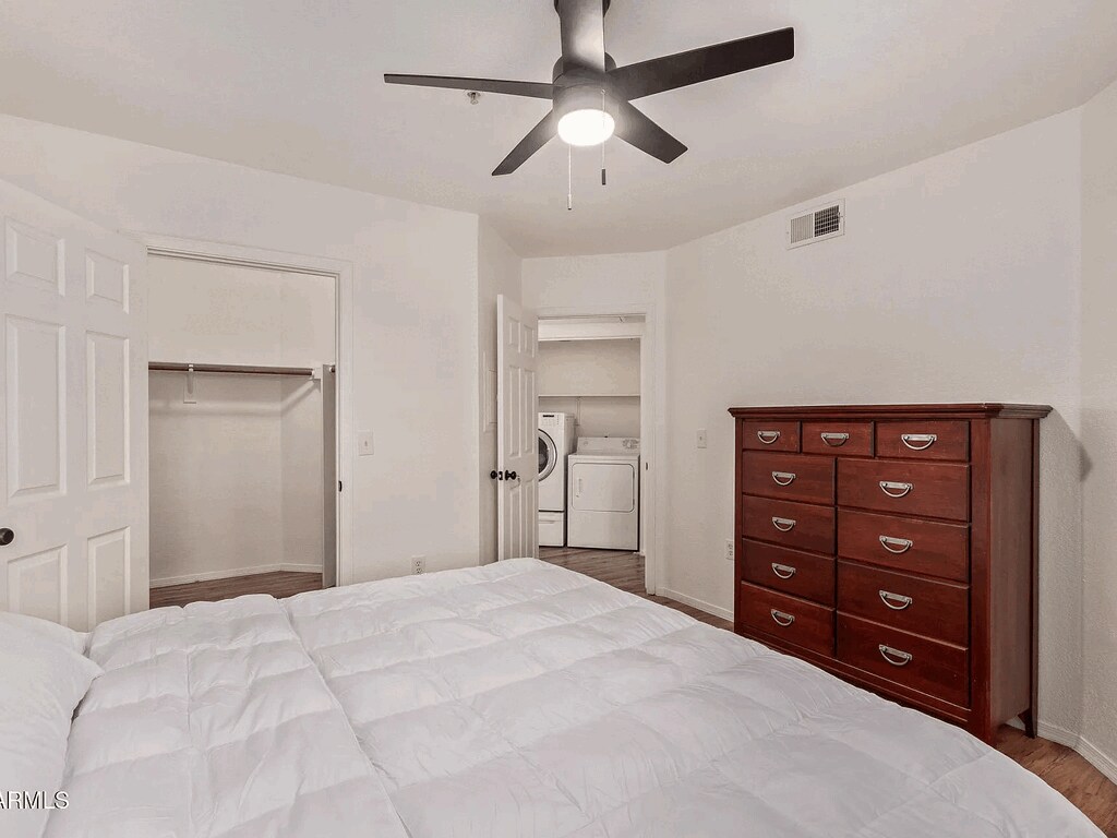 Spacious First-Floor Sanctuary in Midtown Phoenix – The Hawthorne Experience the perfect blend of convenience and luxury in this oversized 783 sq. ft. ground-floor condo. Ideal for those who prefer the "single-story home" feel, this unit allows you to skip the stairs and elevators entirely. Step inside to find an expansive open-concept living area bathed in natural light, featuring modern laminate wood flooring throughout for a sleek, low-maintenance finish. Have breakfast on the patio located just off the kitchen area. Open Kitchen & Living The kitchen comes fully equipped with a suite of appliances and generous cabinet space, leading into a living area that feels significantly larger than your standard 1-bedroom. Enjoy the ultimate convenience of a dedicated laundry area with a full-sized in-unit washer and dryer included. Pet-Friendly Living (40lb Limit) We welcome your furry companions! To ensure community harmony at The Hawthorne, our policy allows up to 2 pets (1 cat and 1 dog) with a maximum weight of 40 lbs each. Please note that breed restrictions apply per HOA guidelines (no Pit Bulls, Rottweilers, German Shepherds, Dobermans, or Chows). A $200 non-refundable pet fee and $40/month pet rent apply. Resort Amenities & Prime Location Amenities: Access two sparkling pools, a 24-hour fitness center, a clubhouse, and one assigned covered carport space. Utilities: Rent includes Water, Sewer, and Trash—a major monthly saving! Transit: Unbeatable location within walking distance to the Light Rail and Midtown’s top dining spots.